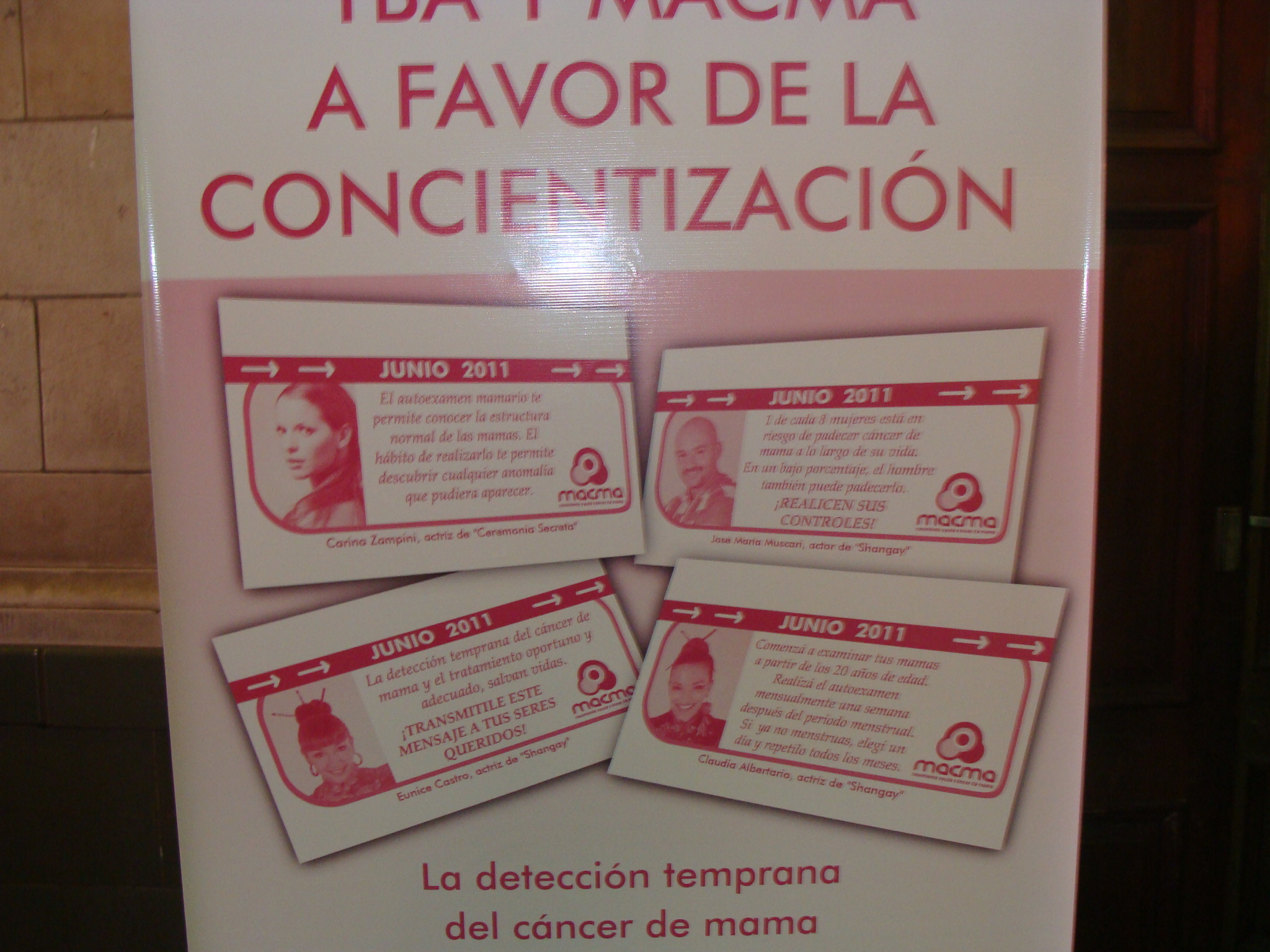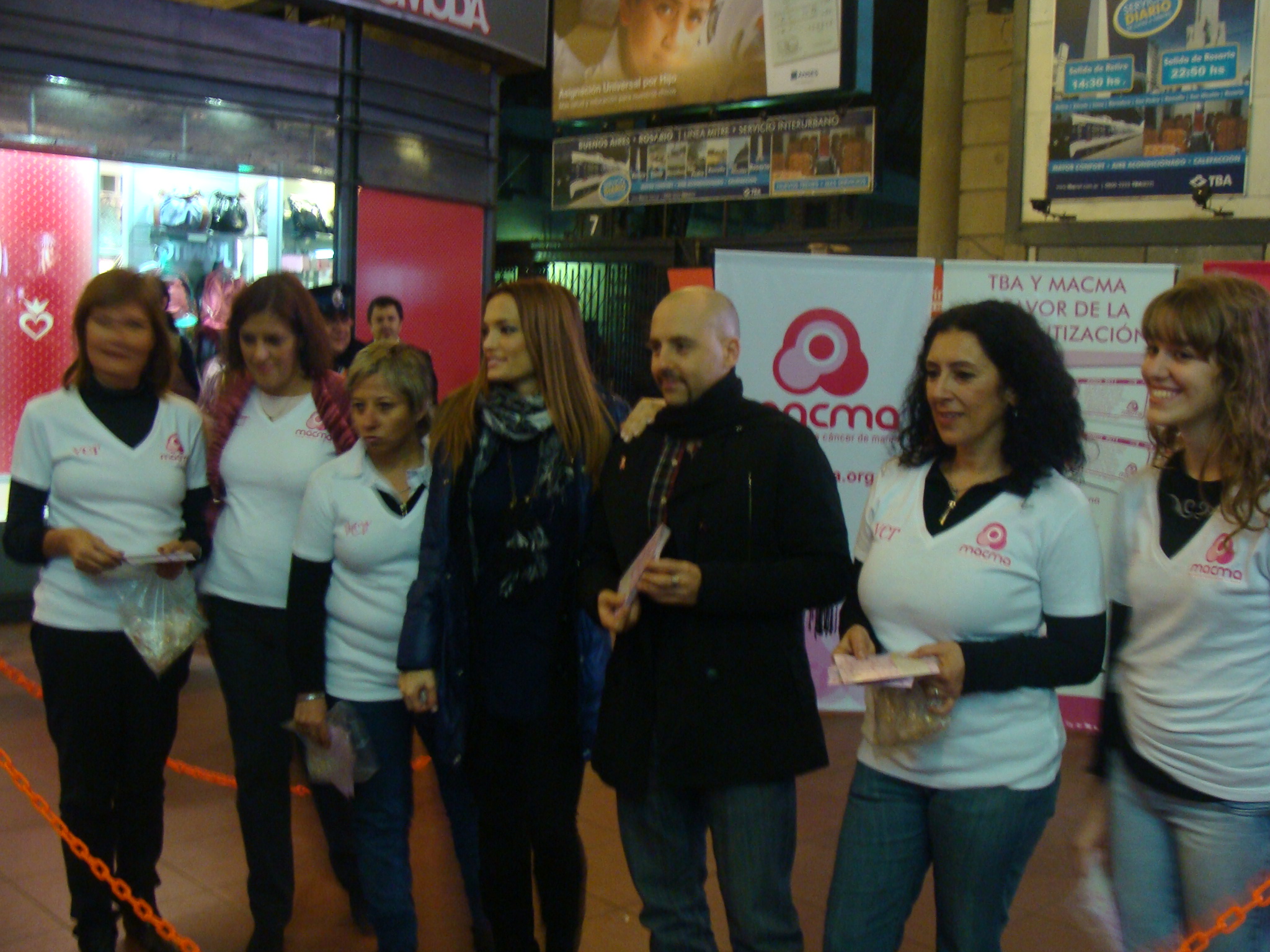 El viernes 17 de junio se realizó una acción benéfica que tiene como objetivo la concientización sobre la detección temprana del cáncer de mamas, destinada a la mujer y su entorno familiar, con la Fundación MACMA, especializada en el tema y el apoyo de la empresa TBA (Trenes de Buenos Aires). La acción estuvo a cargo de parte del elenco de SHANGAY, donde José María Muscari y Claudia Albertario, dos de los actores protagonistas de la obra, repartieron folletos y pins (con la clásica cinta rosa, que identifica el cáncer de mamas en todo el mundo) a todo el público que transitó por el hall de la Estación Retiro de las líneas Mitre del ferrocarril, durante la tarde para llevar información preventiva a todas las mujeres que se acercaron al stand habilitado al respecto.